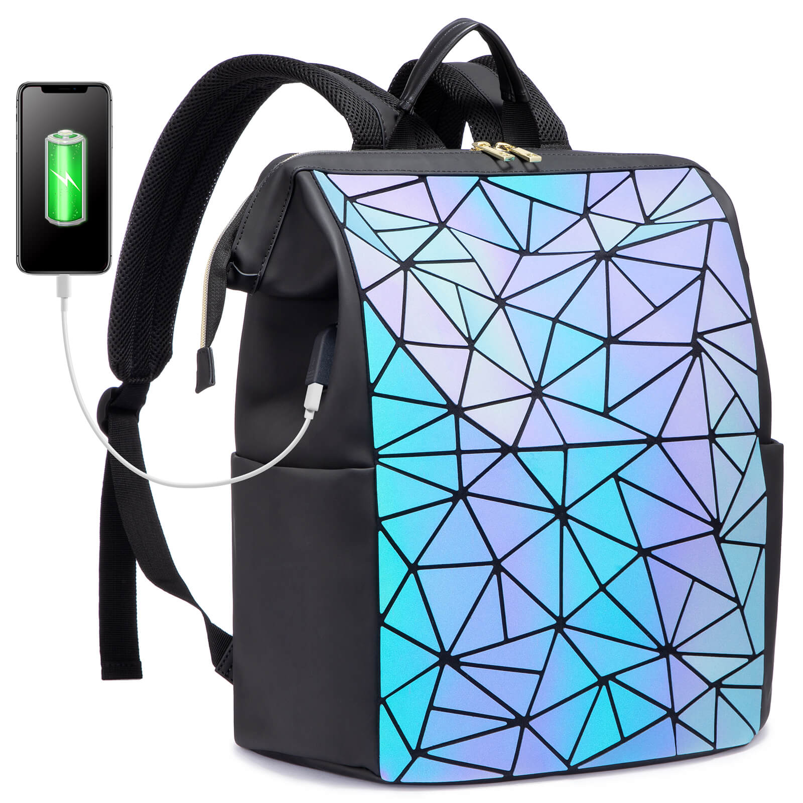Do you want a backpack that is both beautiful and practical? Introducing the Luminous Backpack with USB Charger Port! It is perfect for girls who want to show off their unique style. The backpack has a cool design that changes colors with the light, making it the perfect accessory to complete any outfit.